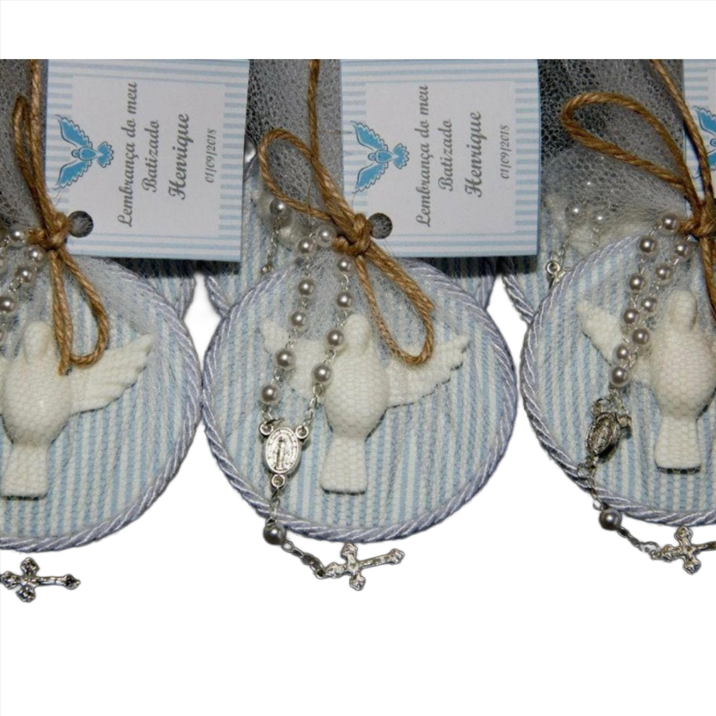 - Significado: O terço representa a fé e a espiritualidade, tornando a lembrancinha ainda mais significativa.