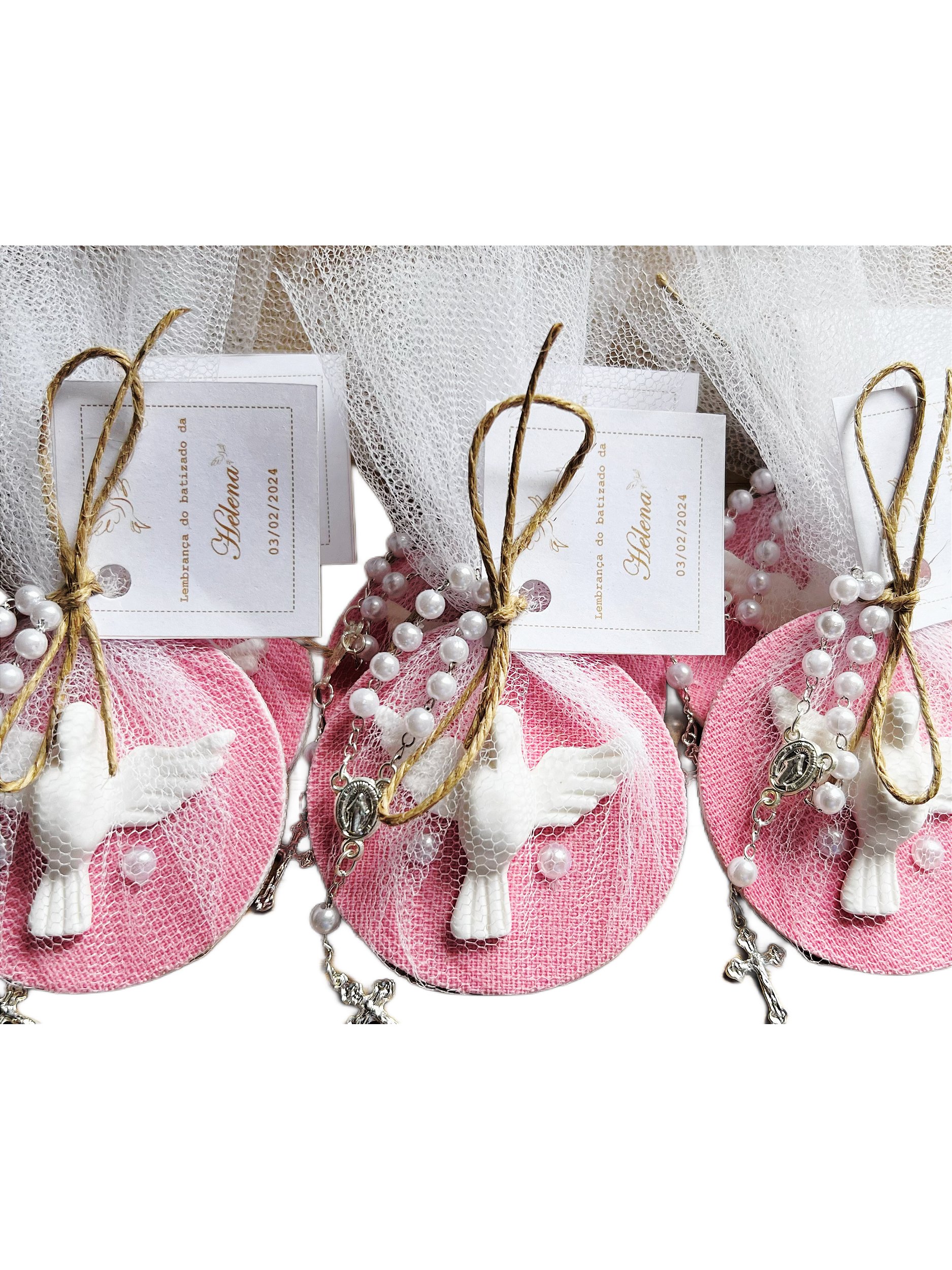 • Significado: O terço representa a fé e a espiritualidade, tornando a lembrancinha ainda mais significativa.